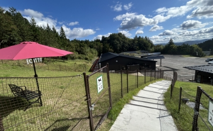 ドッグラン奥の「見晴らしの丘」で、広がる景色を楽しんだり、セルフカフェでコーヒーを片手に愛犬をゆったり見守ったり。一緒に駆け回るのももちろんOK。過ごし方は自由です。